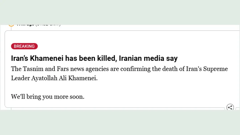 ইরানের সর্বোচ্চ নেতা আয়াতুল্লাহ আলী খামেনি নিহত হয়েছেন। রোববার (১ মার্চ) ইরানের বার্তা সংস্থা তাসনিম ও ফার্স নিউজ এজেন্সির বরাতে আল জাজিরার প্রতিবেদনে এ তথ্য জানানো হয়।